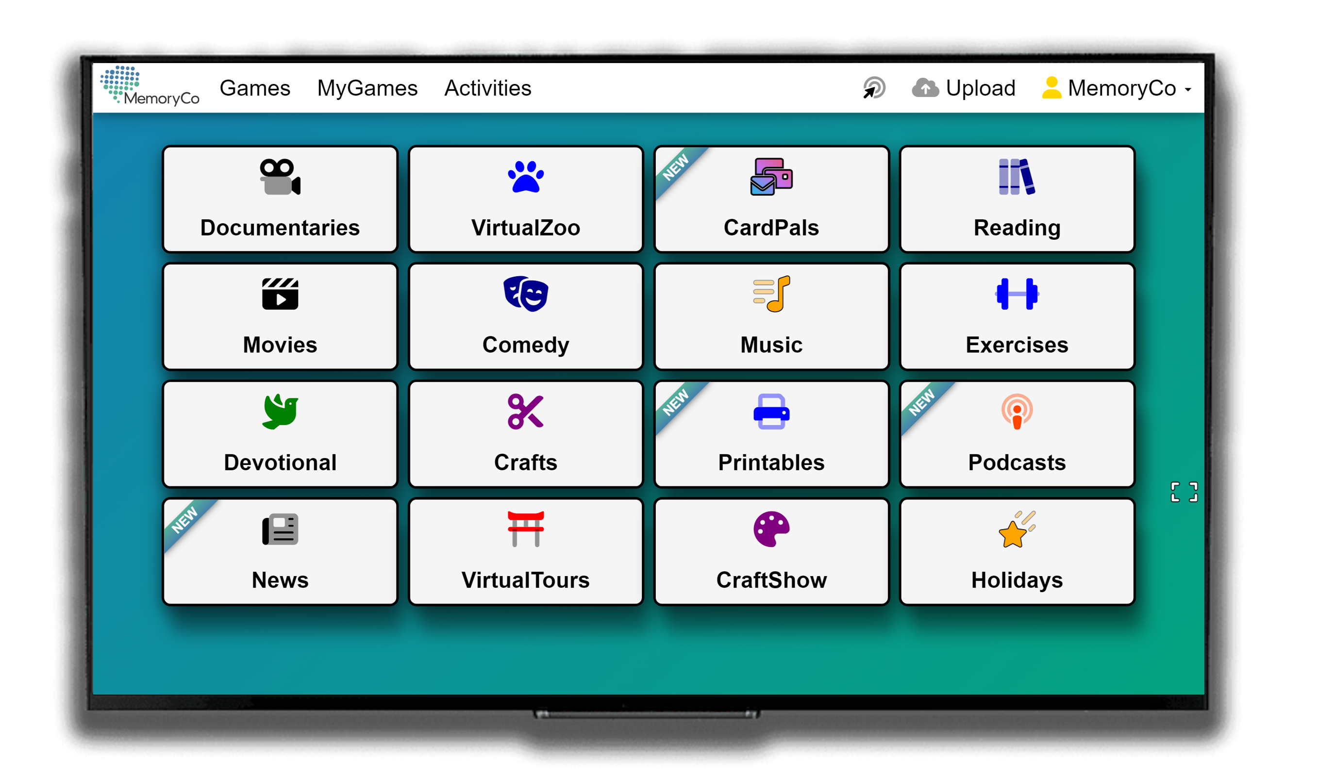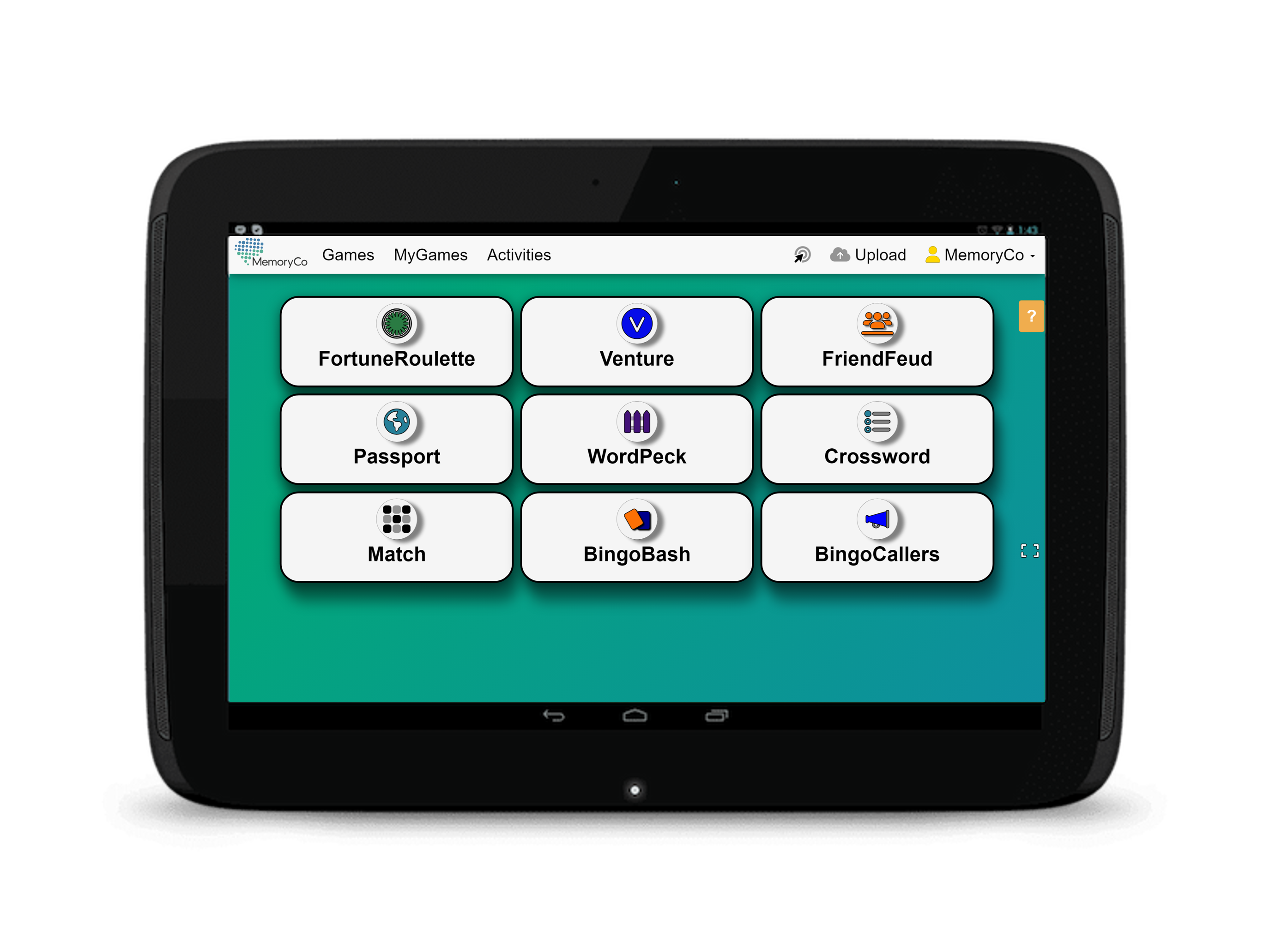 We made sure MemoryCo works for you and your residents! All our games are easy to use and can be projected to a TV to play as a group or individually on residents' own tablets--even if they are first-time users!